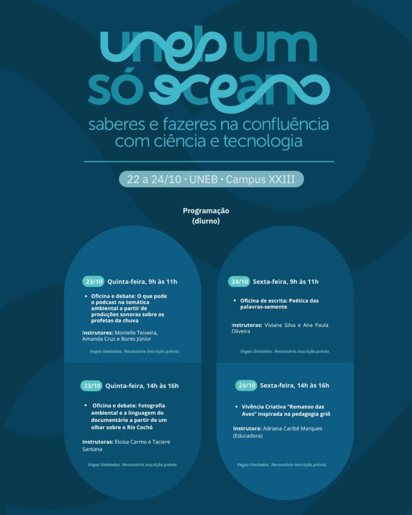 Durante o evento, haverá também uma mostra de banners produzidos pelos alunos do curso de Jornalismo da UNEB, apresentando pesquisas e projetos sobre comunicação, sustentabilidade e saberes locais.